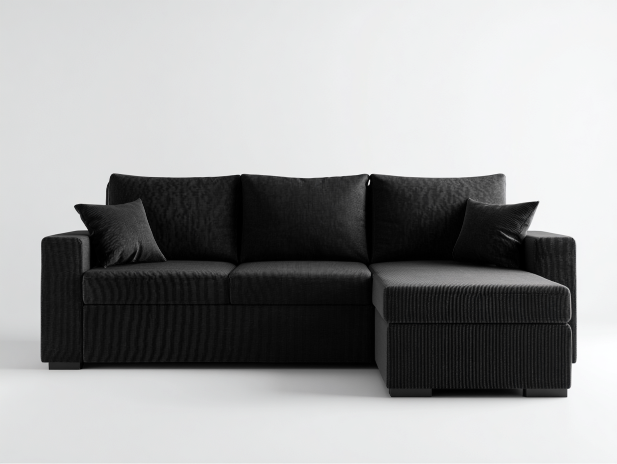 Ce canapé d'angle au design moderne s'intègre harmonieusement dans le salon et propose une assise généreuse adaptée à un usage quotidien. Son allure sobre valorise l'espace de vie.