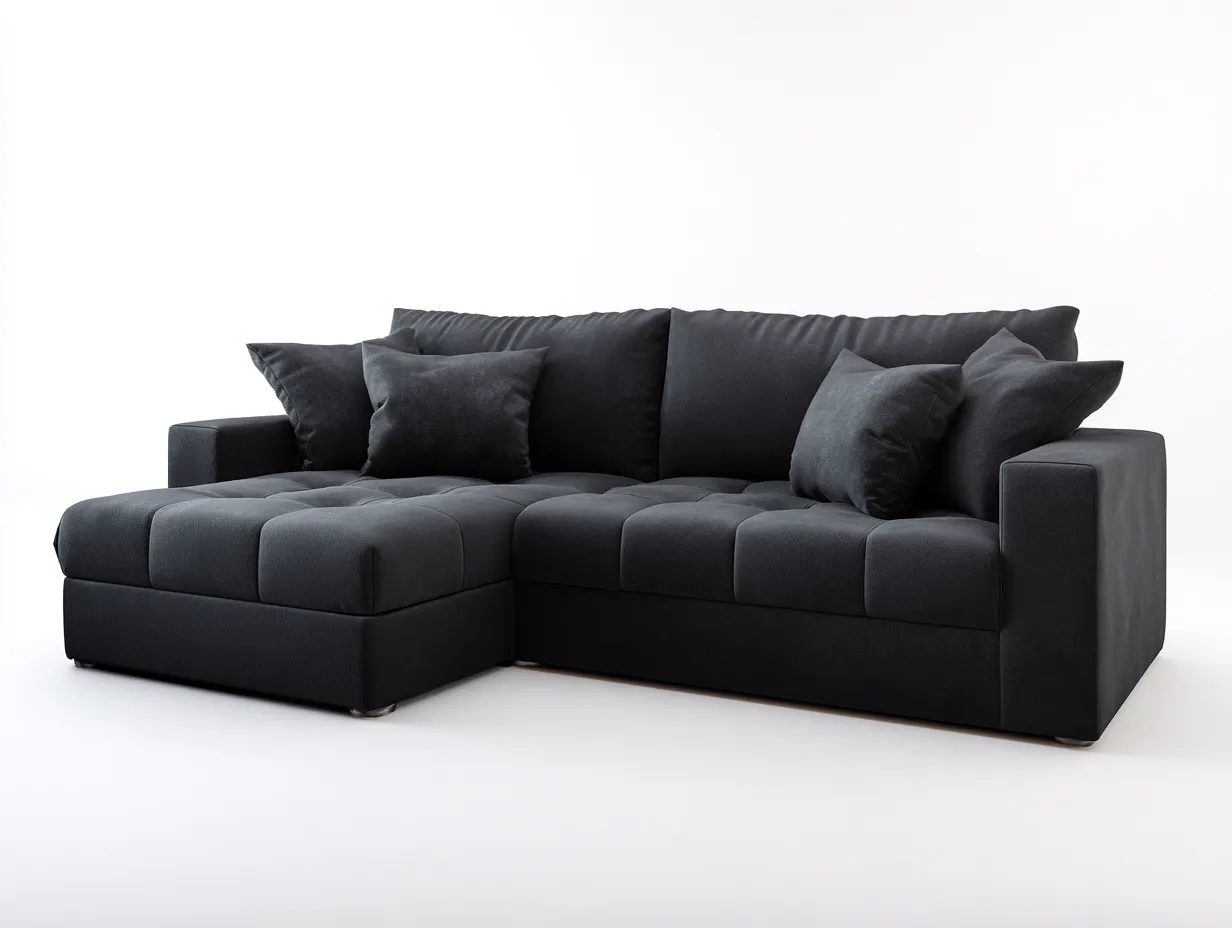 Ce canapé d'angle au design moderne et aux lignes généreuses apporte un confort optimal au salon. Son assise large et continue convient parfaitement aux moments de détente quotidiens.